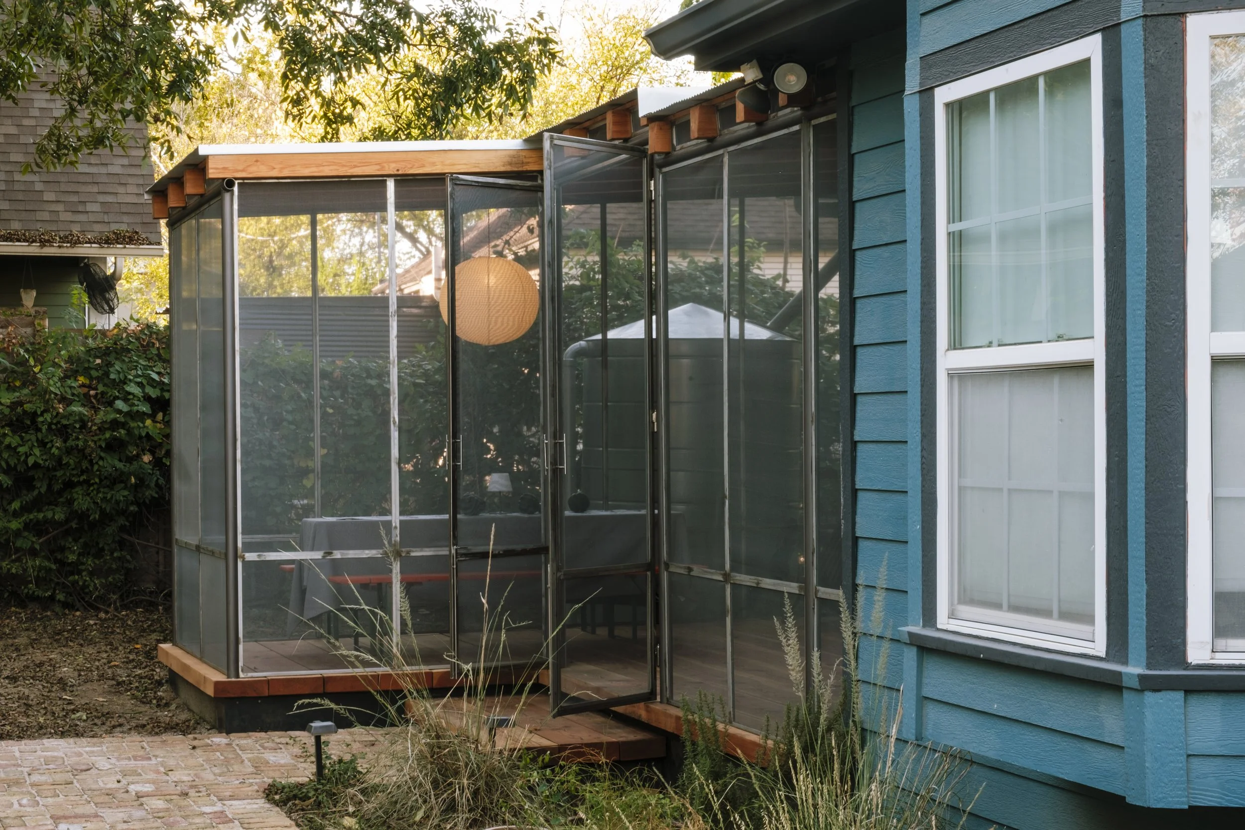 His background in fabrication means every detail is considered — from how Douglas Fir boards span a deck, to how steel fasteners become part of the language, to how proportions feel underfoot. -